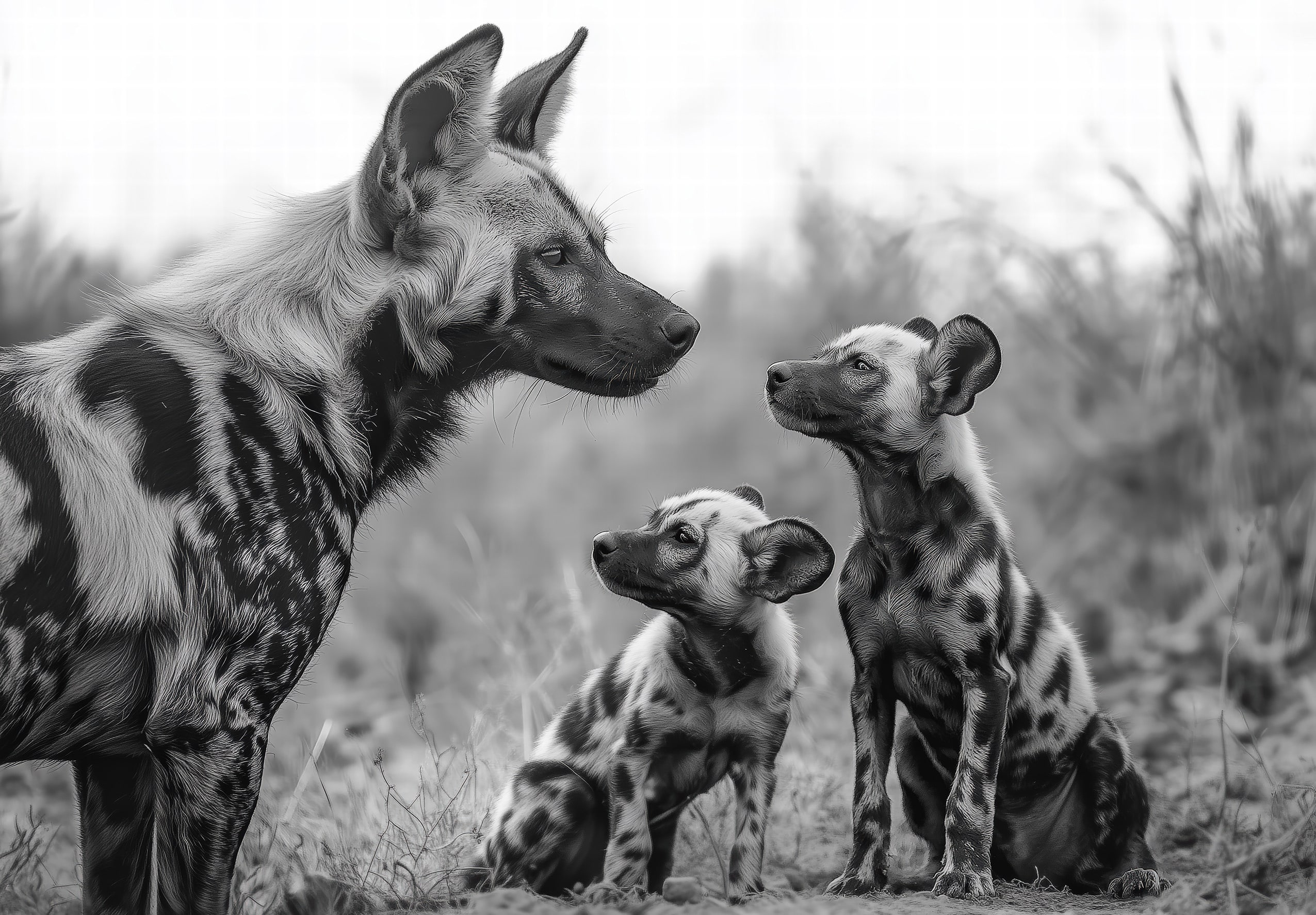 She stood tall, eyes fixed on the horizon, where the lessons of survival awaited them. At her feet, two guilty faces peeked up, their mischief betrayed by wagging tails and lowered ears. She sighed, a mother’s patience worn yet endless. One day, they would lead—but for now, they were hers to teach, to love, to forgive.