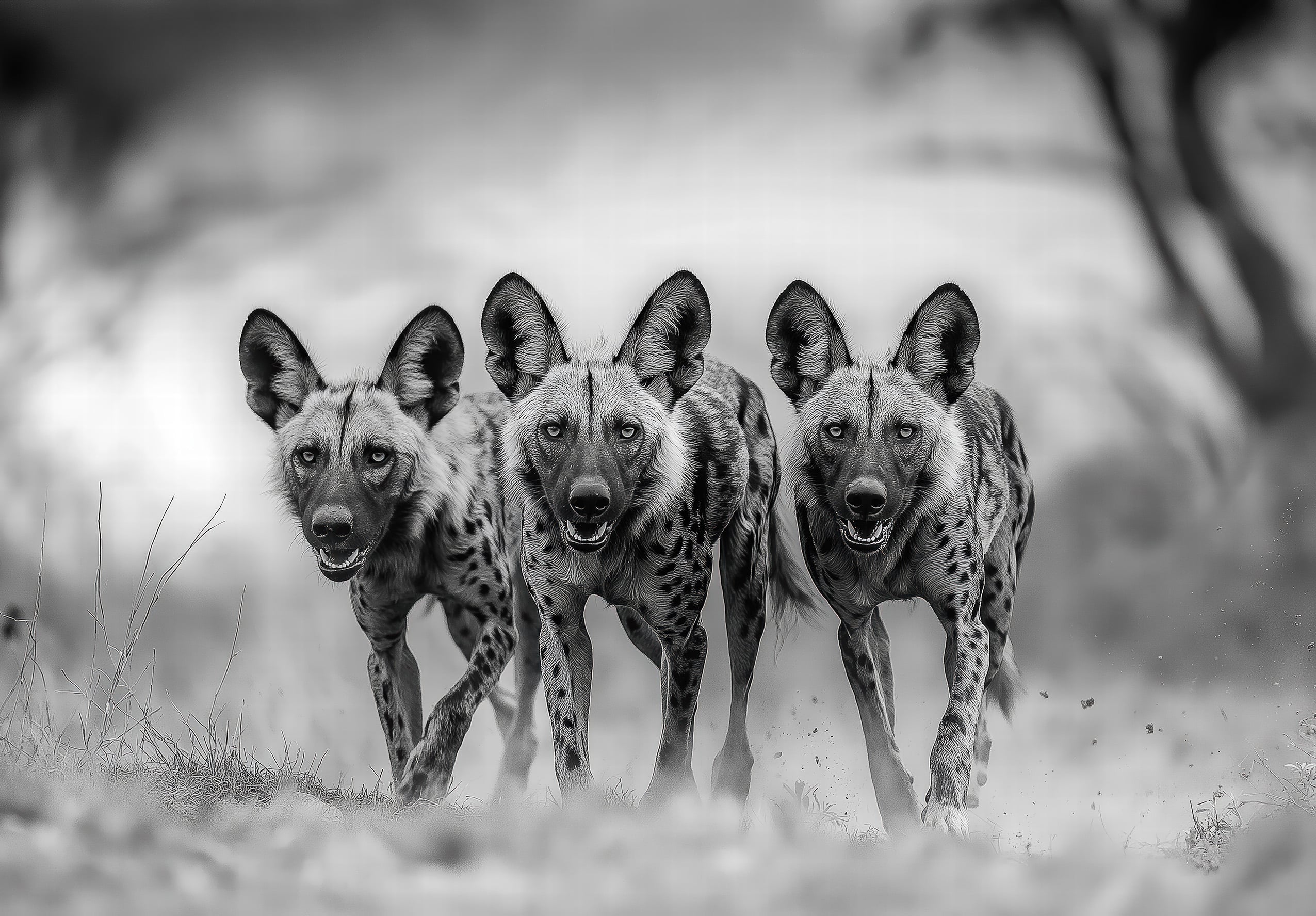They moved as one—silent, calculating, unstoppable. Every step was a whisper against the earth, every breath a vow to the hunt. Their eyes burned with hunger, not just for the kill, but for the chase, the pursuit, the primal thrill of the wild. No hesitation. No mercy. The Relentless Three had chosen their prey. The wilderness held its breath.