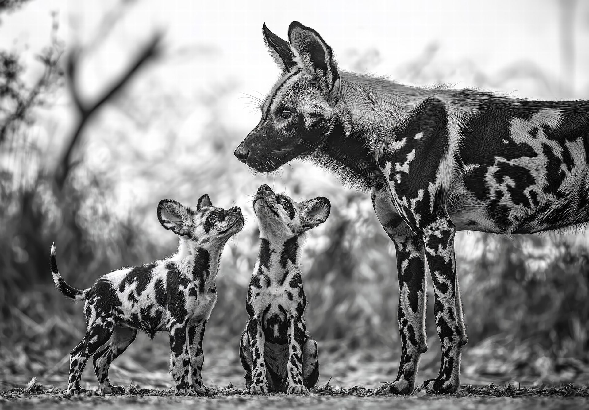 She stood tall, her eyes fierce yet gentle, guarding her young with unwavering devotion. They watched her, full of trust, knowing that beneath her strength lay an unspoken promise—to keep them safe, to nurture their future. In her presence, the world felt certain. She was the heartbeat of their pack, the Protector of the Pack.